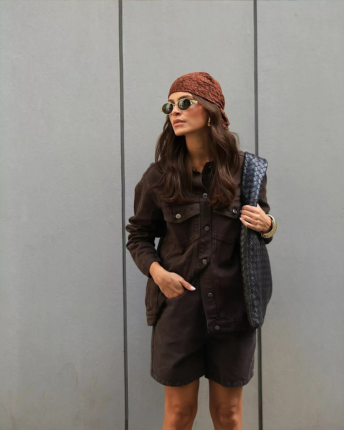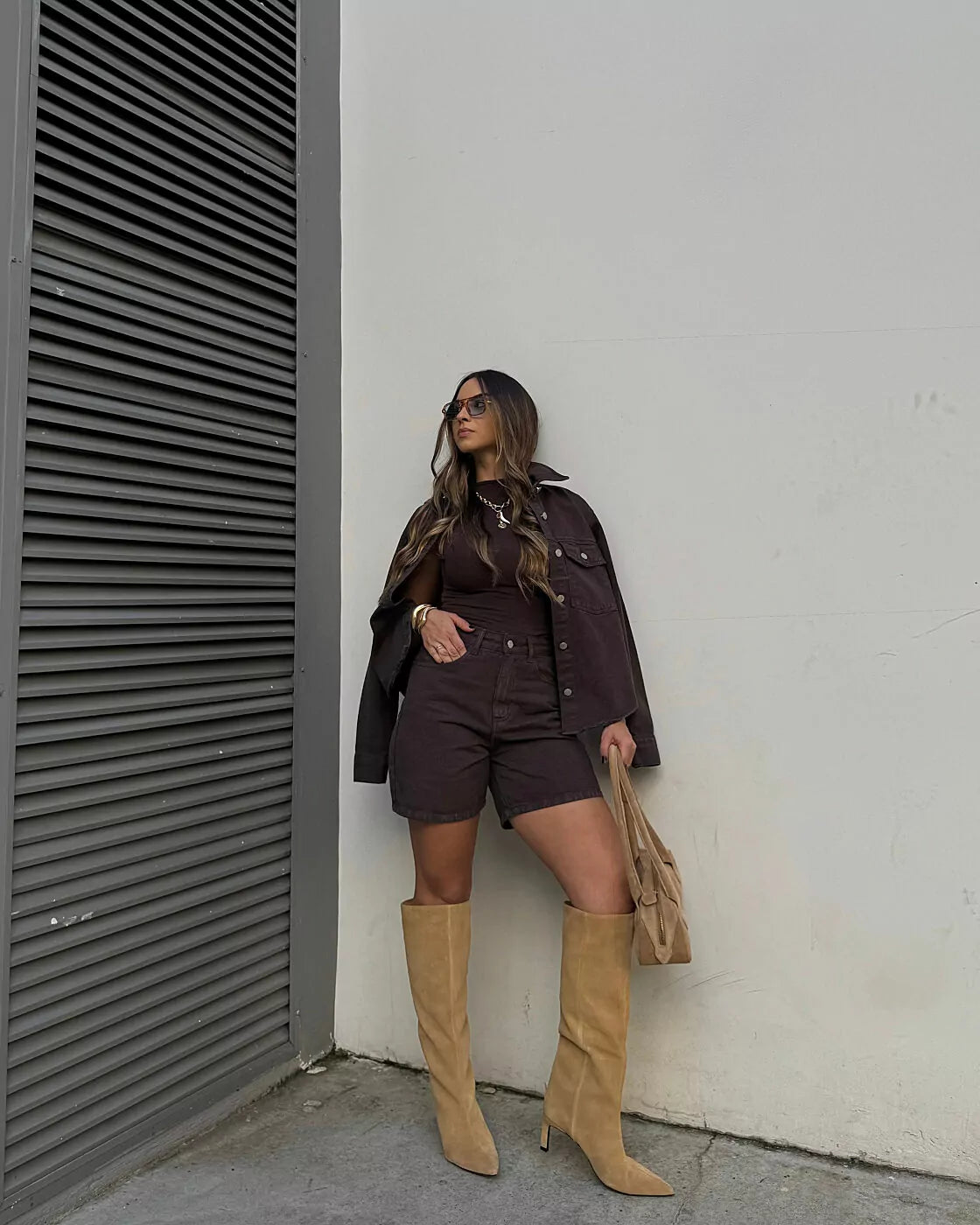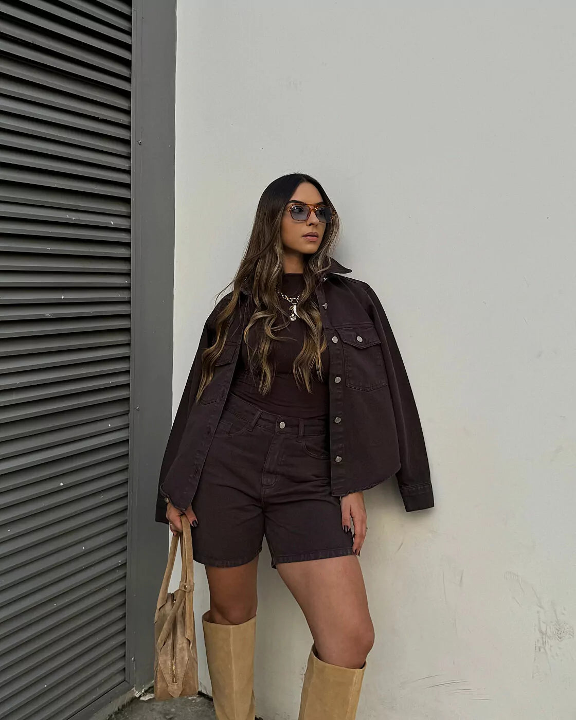 A cor marrom traz um diferencial moderno ao visual, permitindo combinações mais elegantes e harmoniosas com tons neutros, terrosos e estampas.