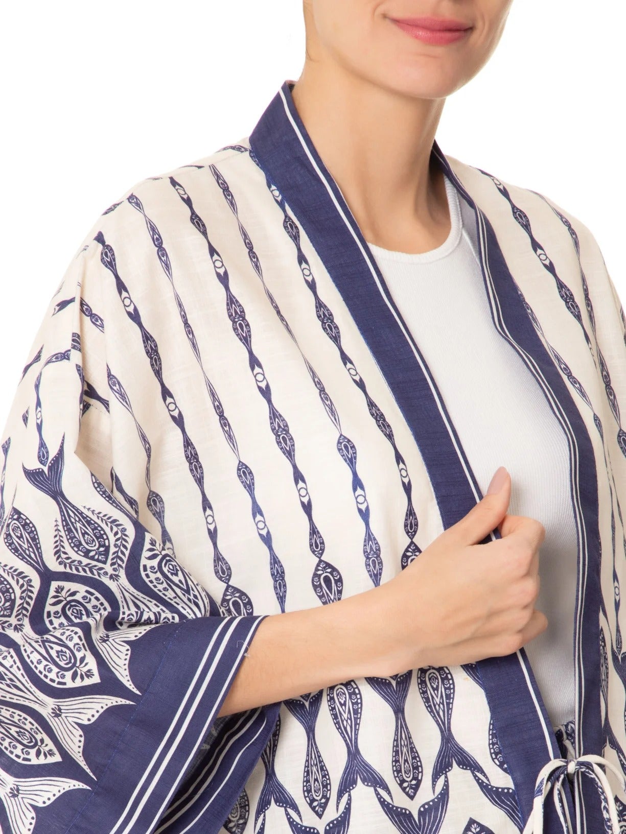 A Blusa Kimono Peixei Correnteza FARM Rio é uma peça versátil e encantadora que une conforto e estilo.
