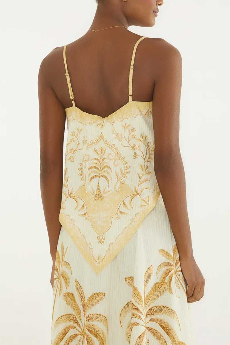 O destaque fica por conta da estampa exclusiva Paisagem Tropical, que traz elementos da natureza com cores vivas e harmoniosas — uma celebração da brasilidade e da energia positiva que são a essência da FARM Rio.