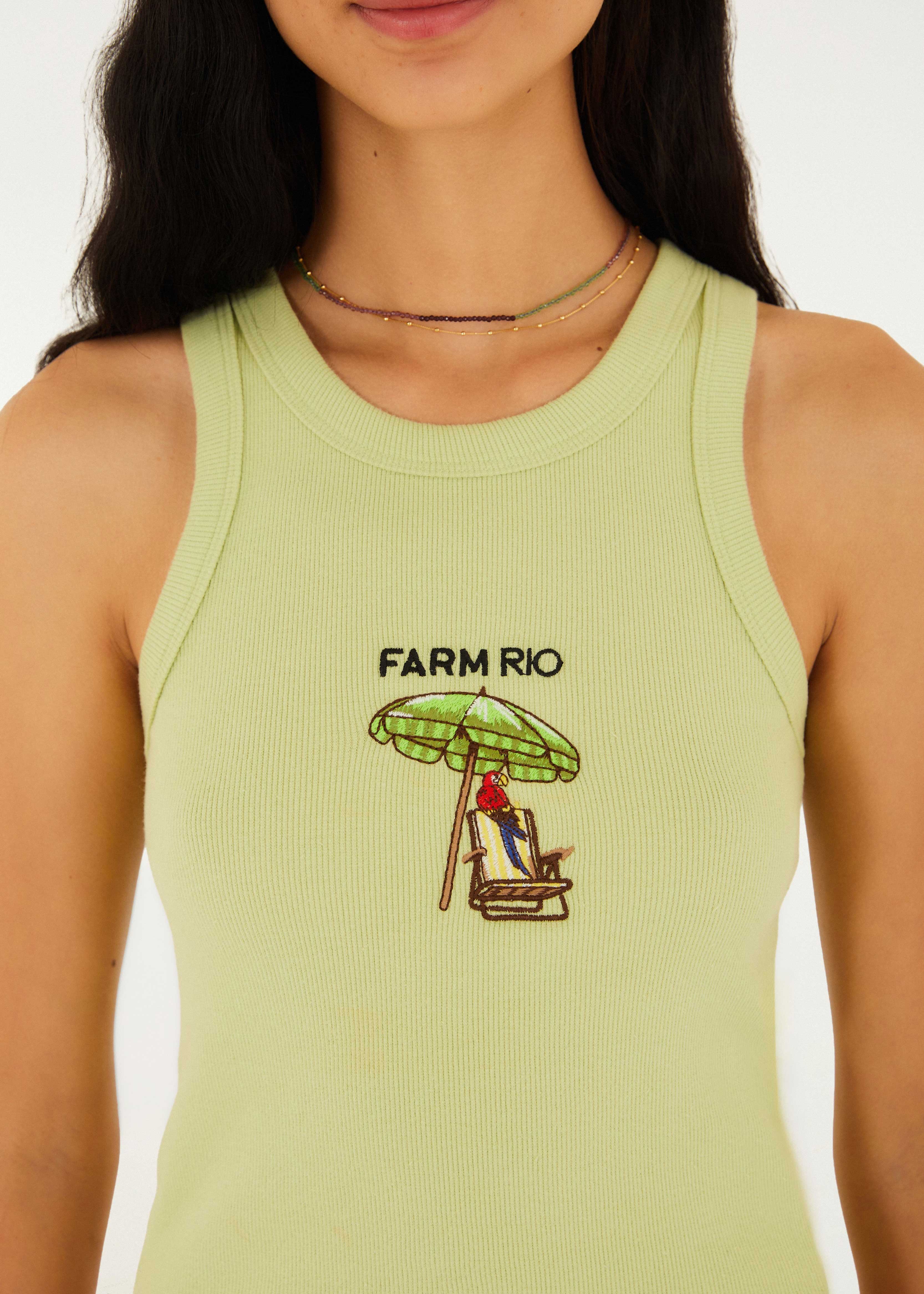 Regata rib praia farm rio. com um toque casual, apresenta alças largas e um corte ajustado que valoriza o conforto. confeccionada em material leve, é perfeita para dias ensolarados e descomplicados na praia ou passeios ao ar livre, reunindo estilo e praticidade. um básico essencial que complementa qualquer guarda-roupa. FARM RIO original - alto verão 26.