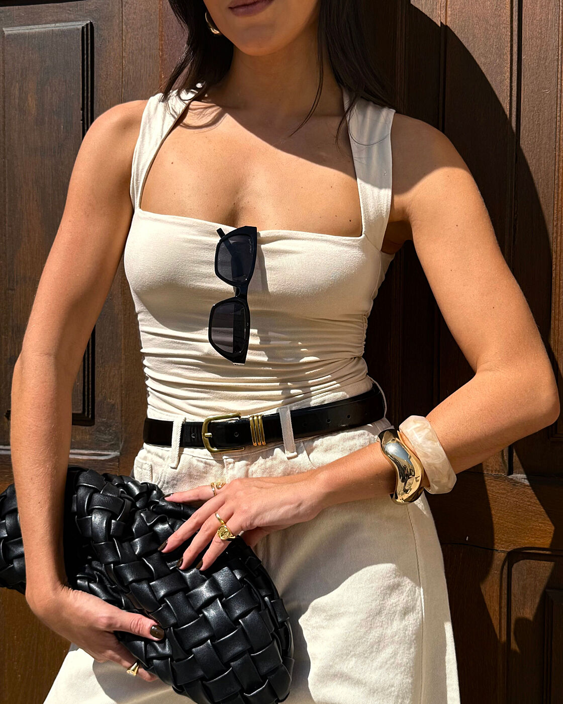 Perfeita para compor produções modernas e femininas, ela pode ser usada sozinha ou sob sobreposições, criando looks minimalistas e cheios de personalidade.