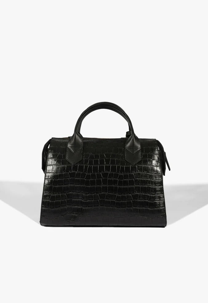 Com textura croco e design estruturado, ela traz um toque de requinte imediato ao visual, elevando desde produções de trabalho até composições mais elaboradas.