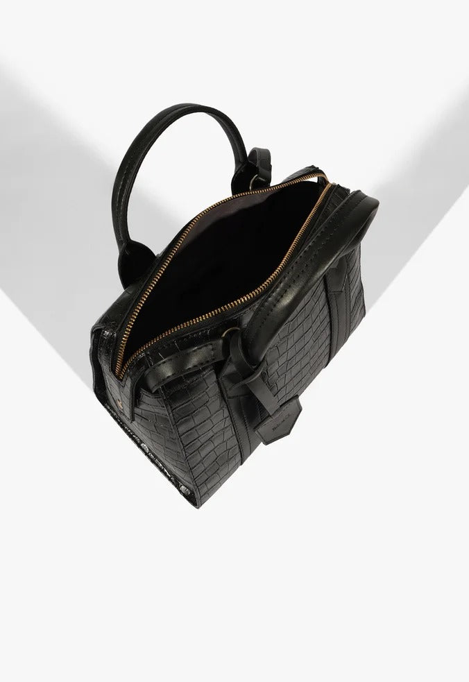 A Bolsa Bowling Croco Preta Schutz é o acessório perfeito para quem busca unir elegância e funcionalidade em uma única peça.