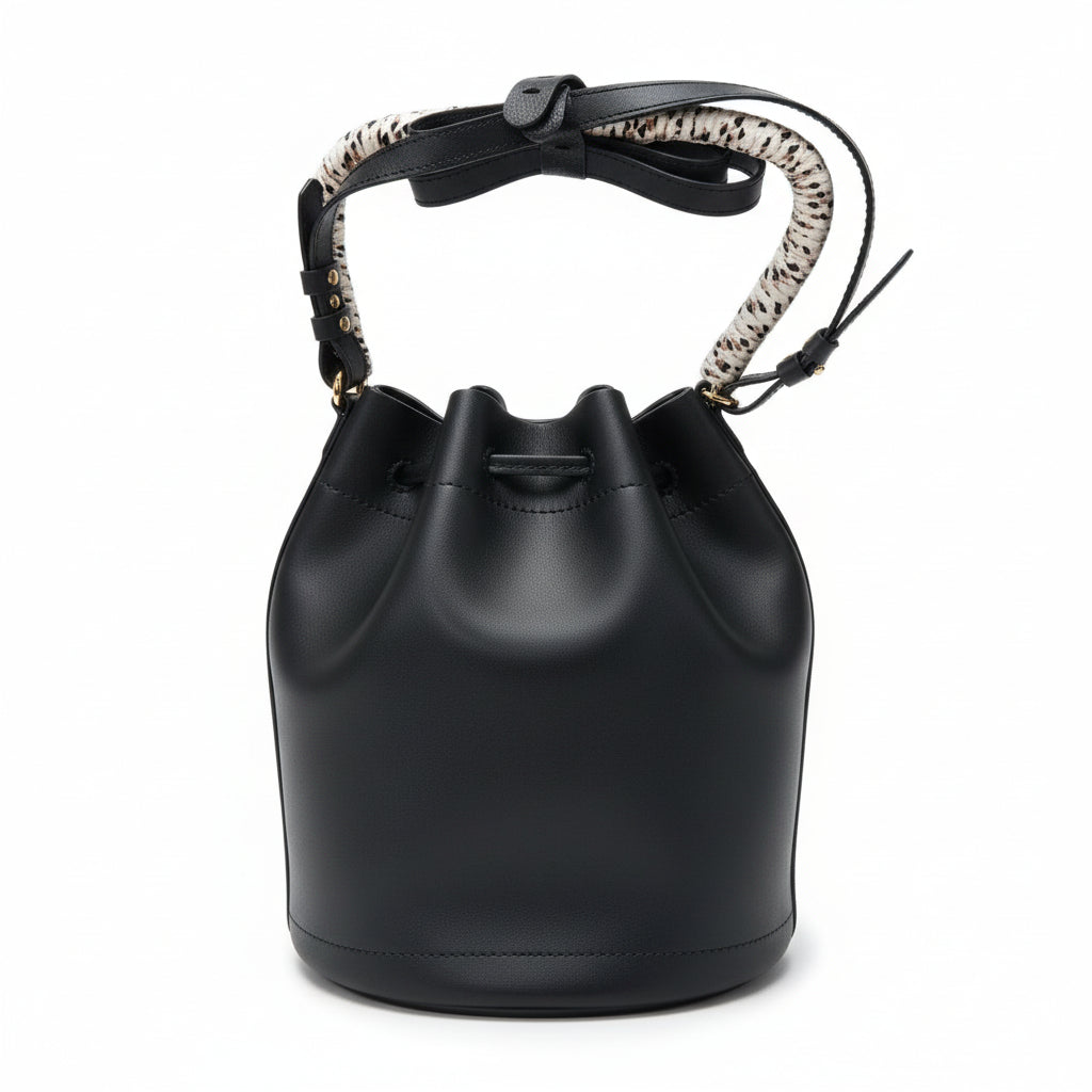 Bolsa Bucket Schutz Preta com Alça Tramada – Atitude, Sofisticação Artesanal e Estilo Urbano