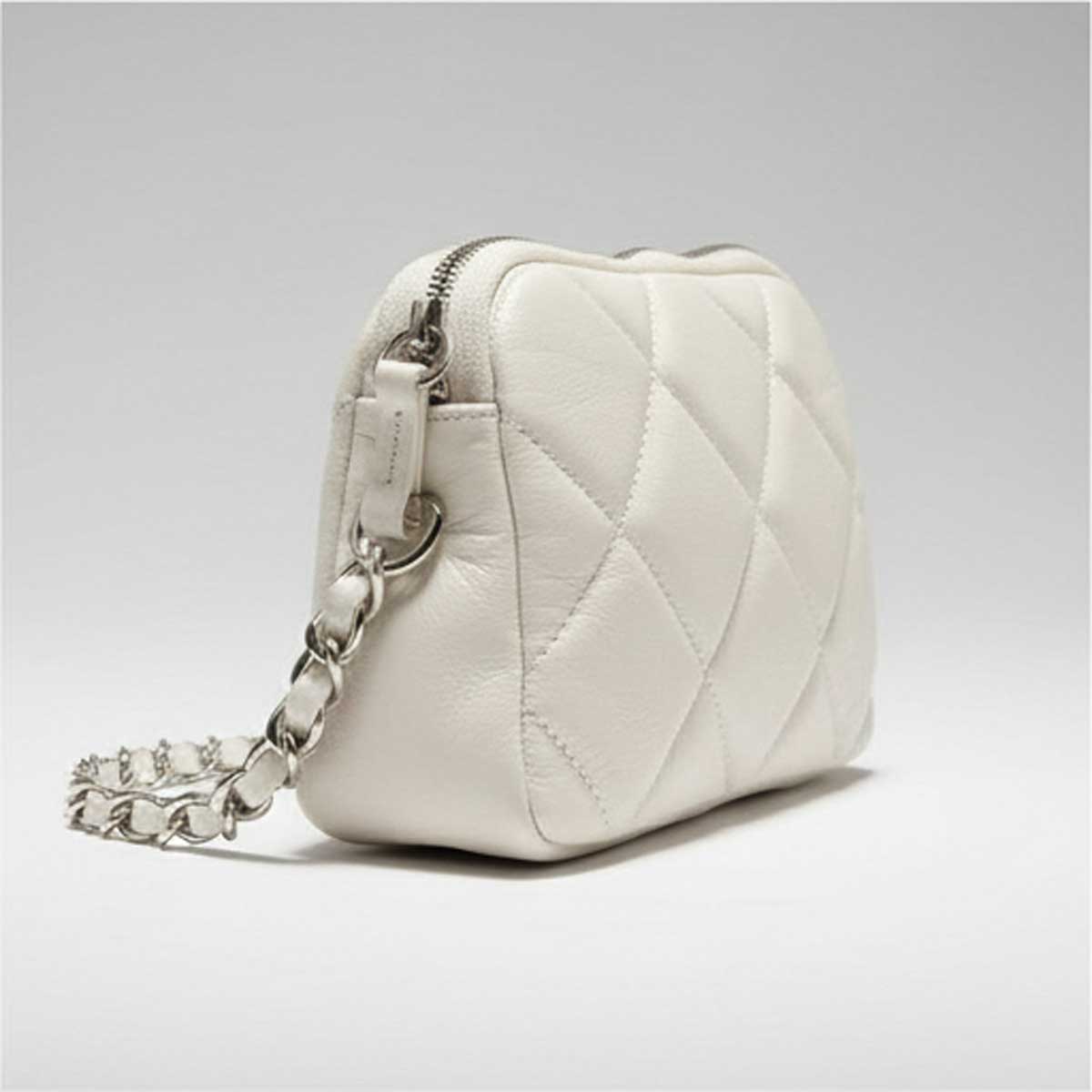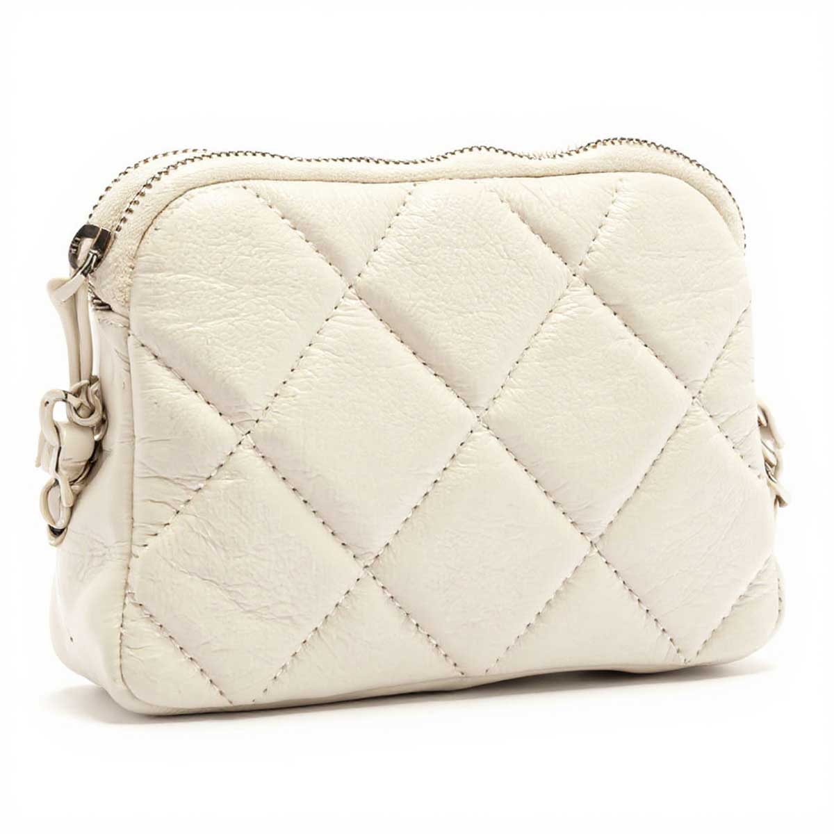 Bolsa Pequena Arezzo Off-White Matelassê – Delicadeza Clássica e Brilho Metalizado