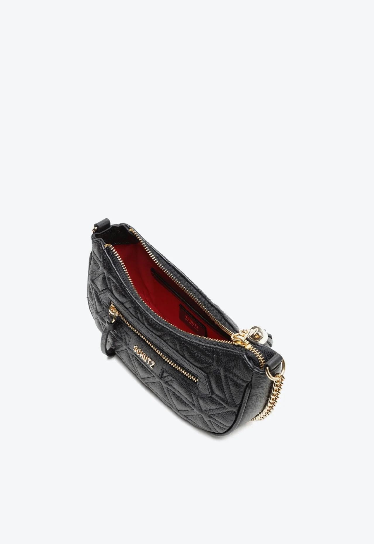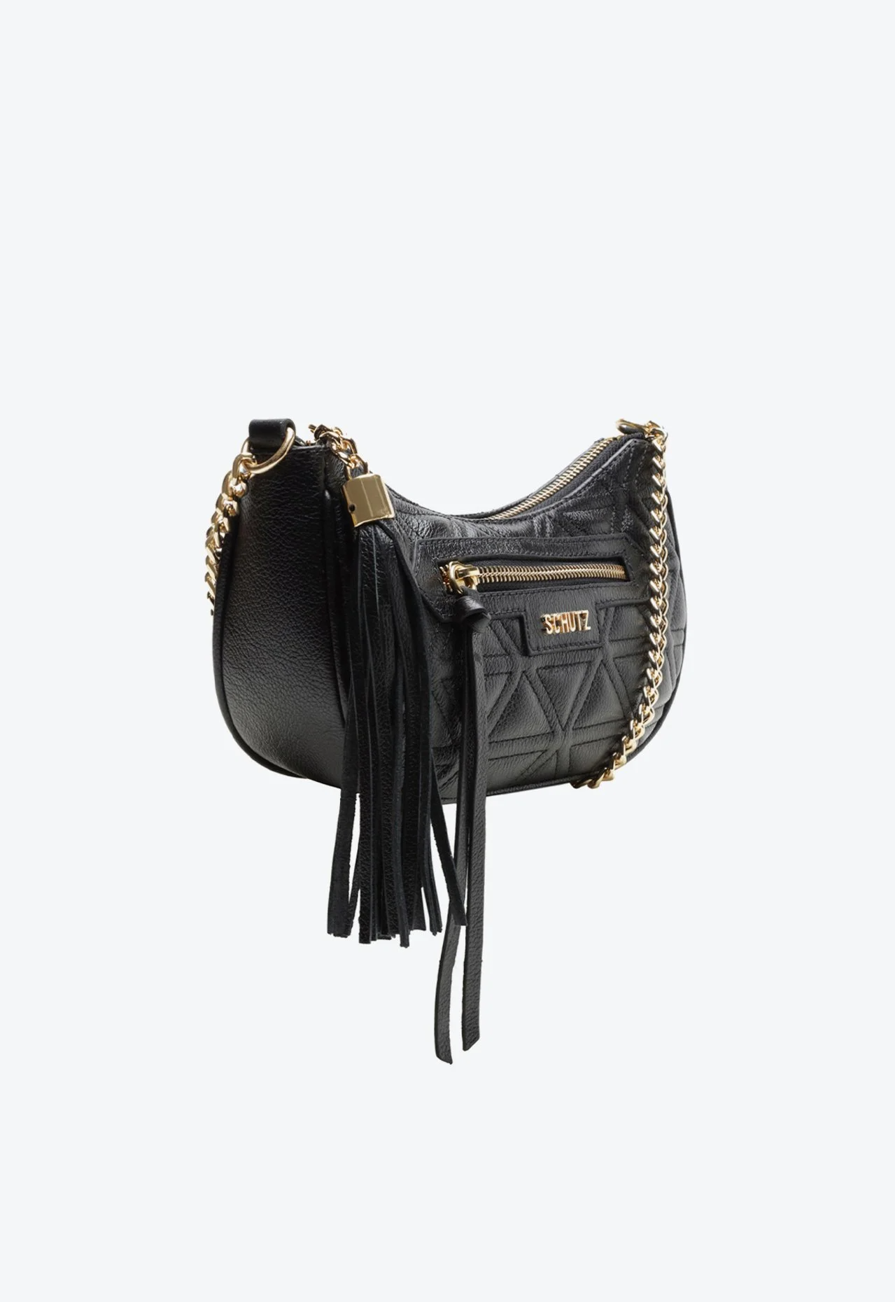 A Bolsa Schutz Meia Lua Preta é a fusão perfeita entre o cool e o elegante. Compacta mas cheia de personalidade, ela é o complemento ideal para transformar o look básico do dia a dia ou para brilhar na balada.