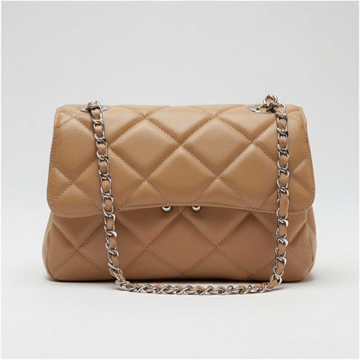 Matelassê Losango Elegante – O acabamento acolchoado com costuras geométricas em formato de diamante confere textura rica e sofisticação imediata, inspirada nos grandes ícones da moda.