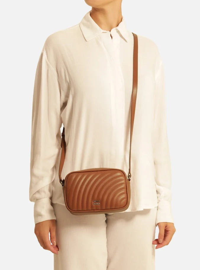 A clássica camera bag ganha uma nova leitura com o design moderno e o matelassê em relevo.