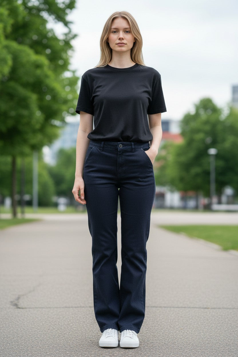Com cintura intermediária, ela oferece caimento confortável e valorização natural da silhueta, enquanto o shape flare cria um visual elegante e sofisticado.
