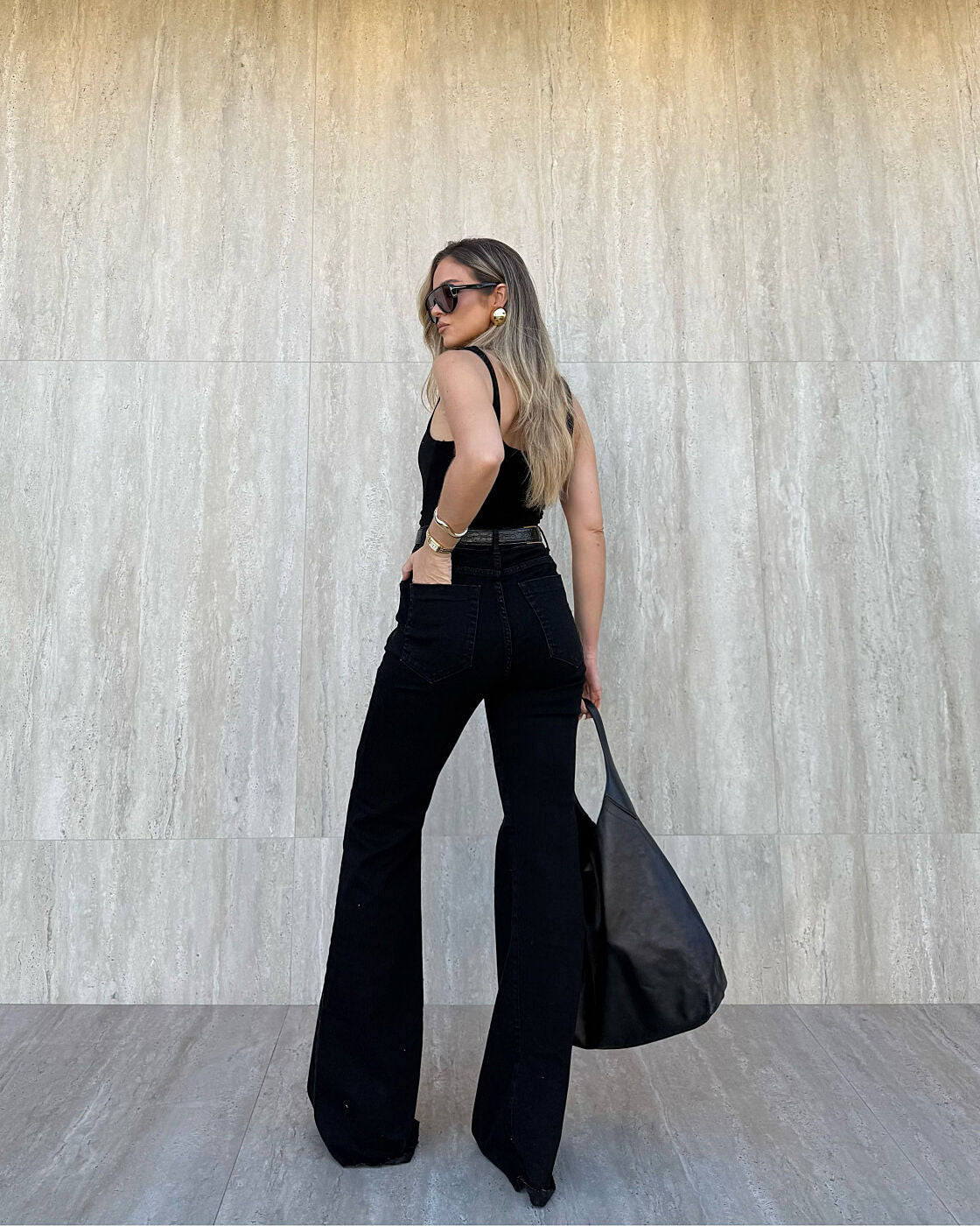 #ALCANCE #VintedoisK #ModaFeminina #CalçaJeans #LookChic #EstiloContemporâneo #JeansPreto #Elegância #Versatilidade #Tendência #ConfortoComEstilo