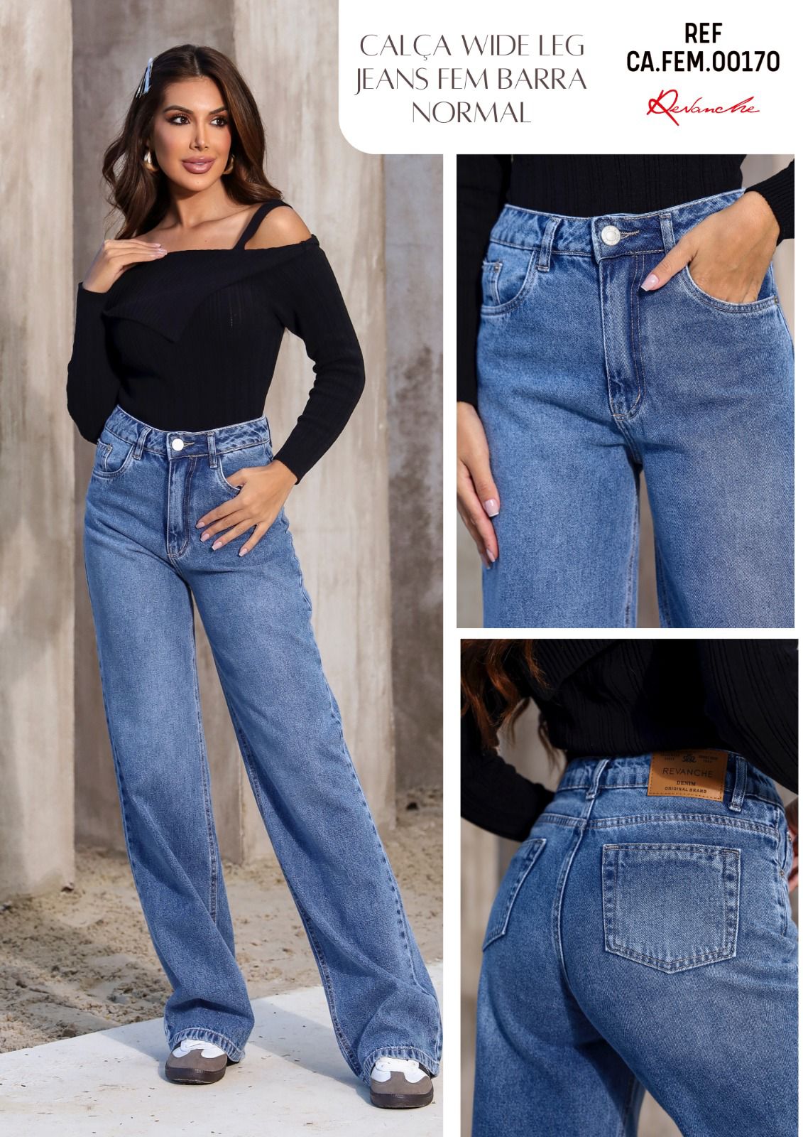 CALÇA JEANS WIDE LEG BARRA NORMAL FEM00170 REVANCHE