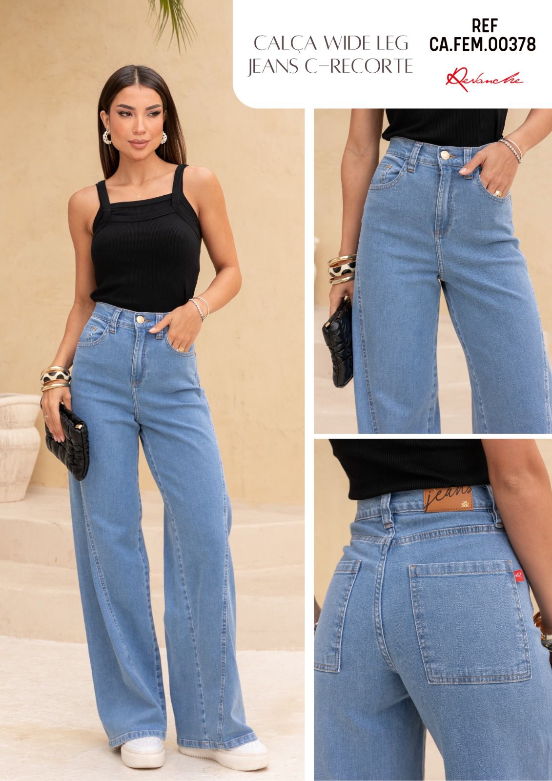 CALÇA JEANS WIDE LEG RECORTE CAFEM00378 REVANCHE