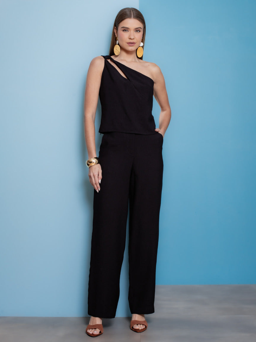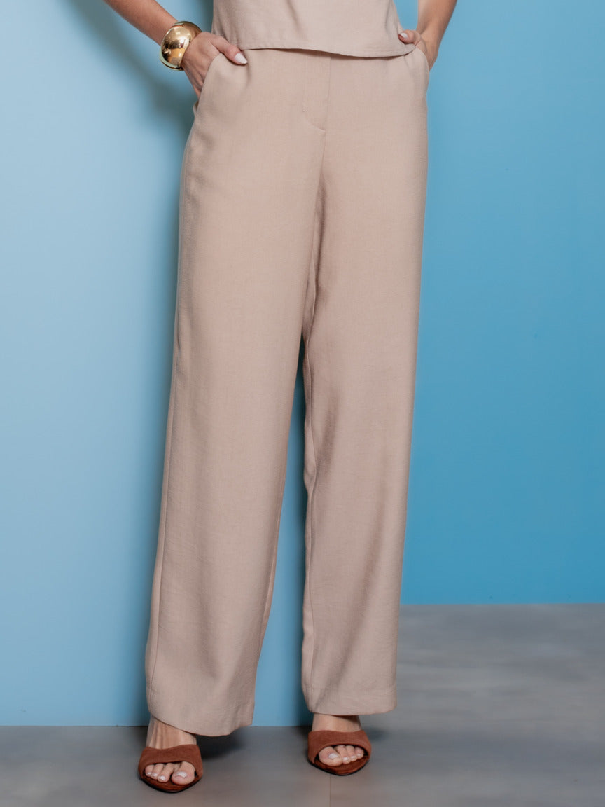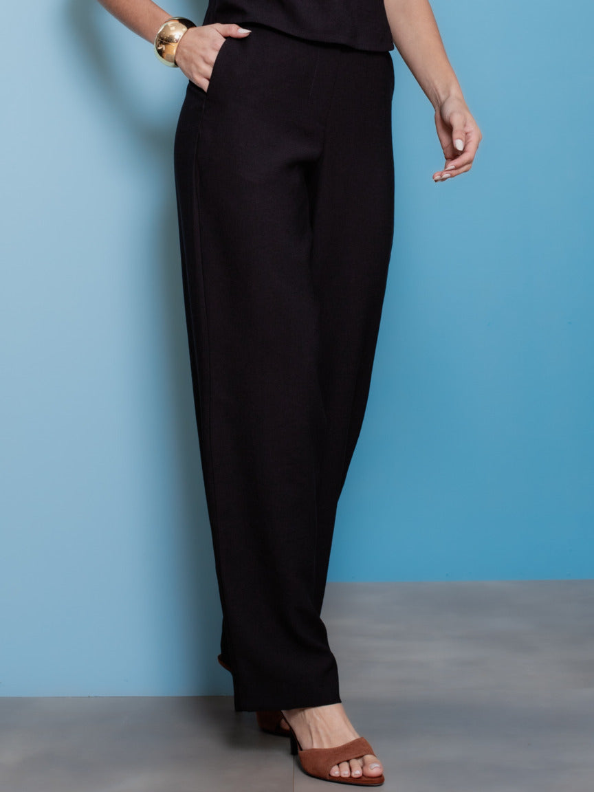 Design Sofisticado – Cintura alta, modelagem ampla que alonga a silhueta e bolsos funcionais com acabamento refinado.