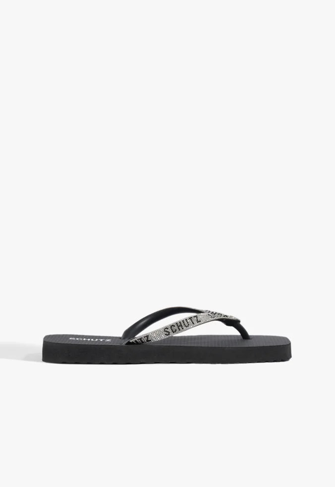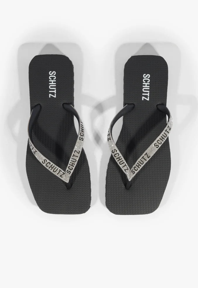 O Chinelo Brilho Preto SCHUTZ é o clássico do verão em sua versão mais sofisticada.