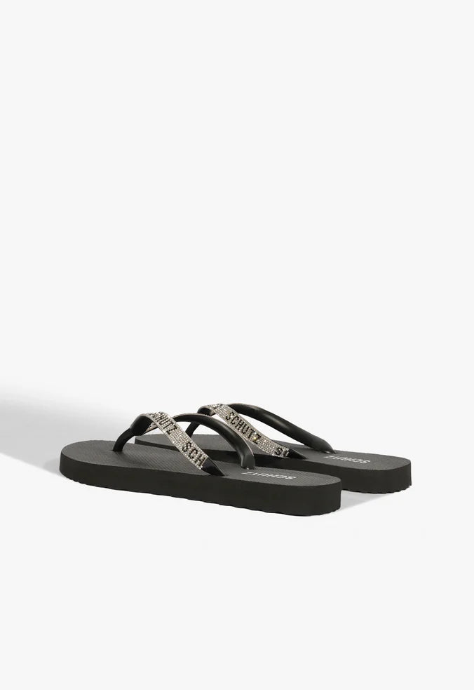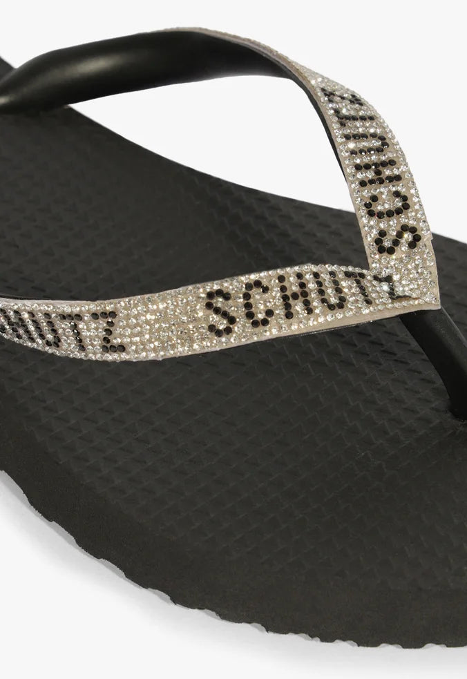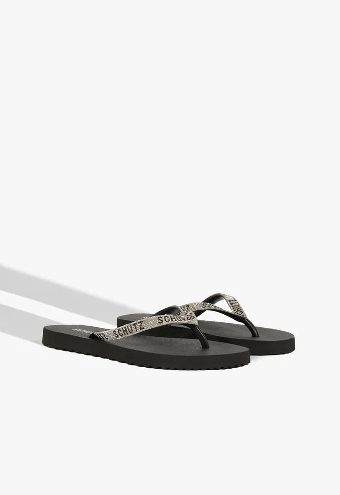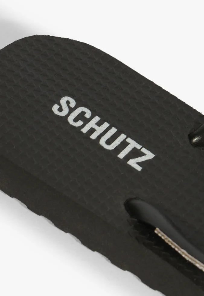 O Chinelo Preto com Tiras de Strass SCHUTZ é a definição perfeita de praticidade com glamour.