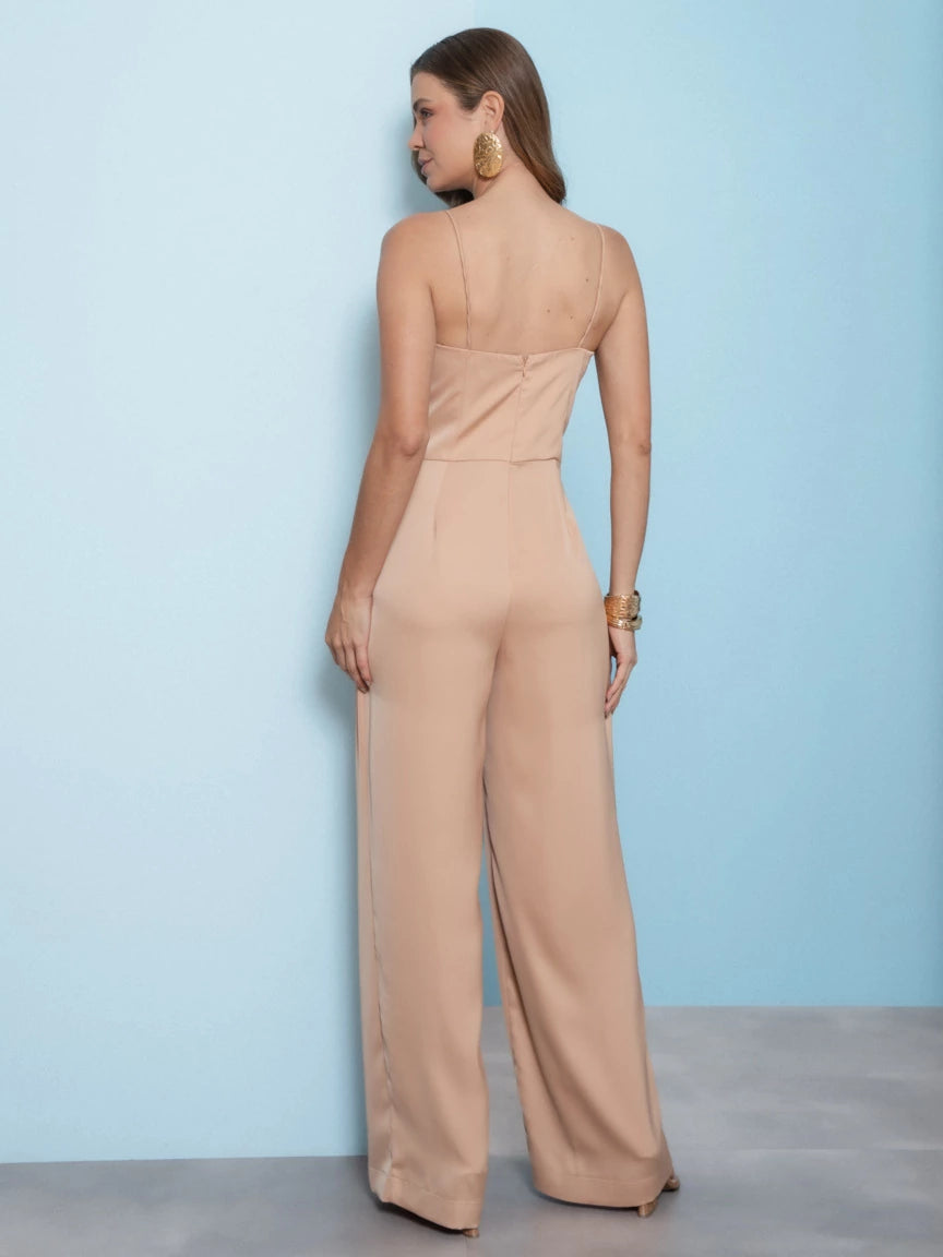 Com caimento impecável, o macacão valoriza a silhueta e proporciona movimento leve, tornando-se ideal para jantares, festas, eventos especiais ou produções noturnas mais elegantes.