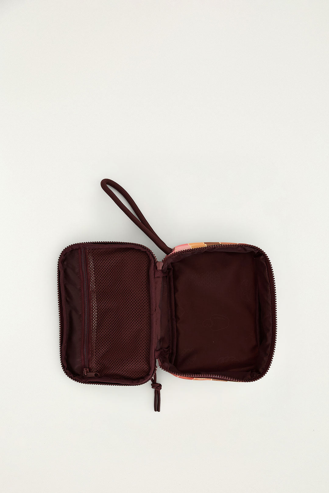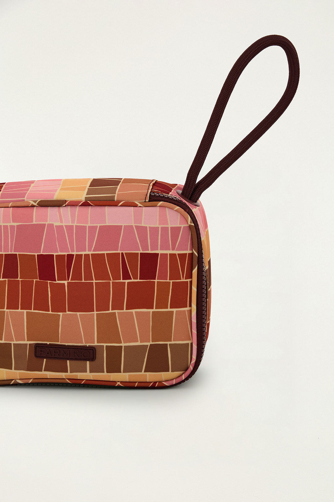 Com estampa geométrica em tons quentes, ela é moderna, elegante e super versátil — dá para usar na bolsa, na mala, no dia a dia ou até como mini bolsinha de mão.