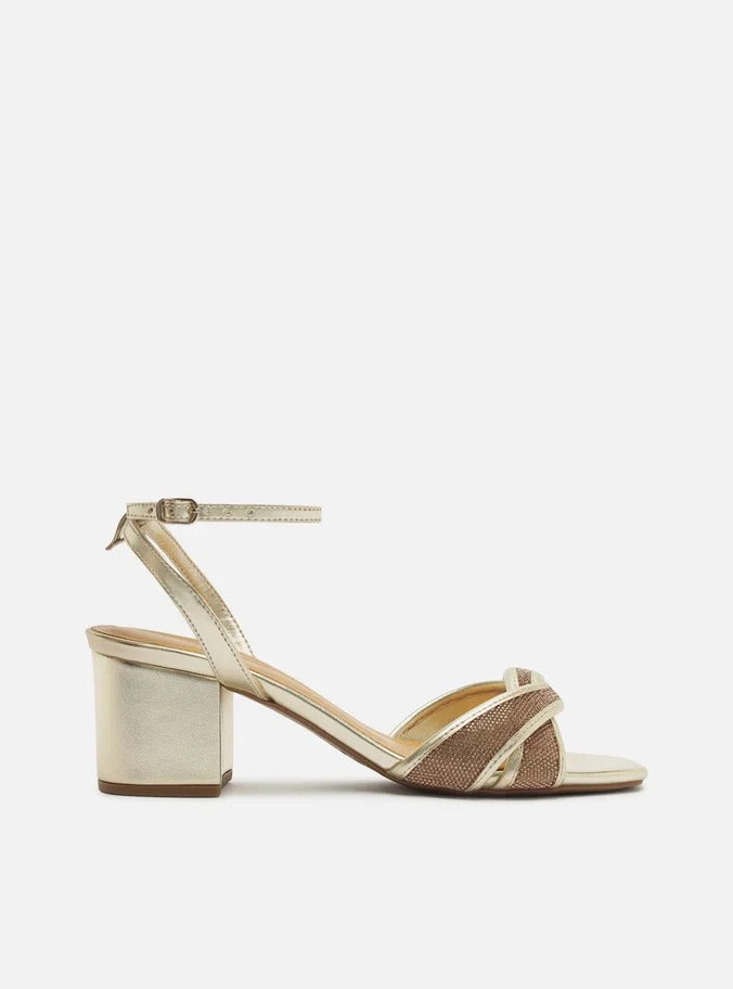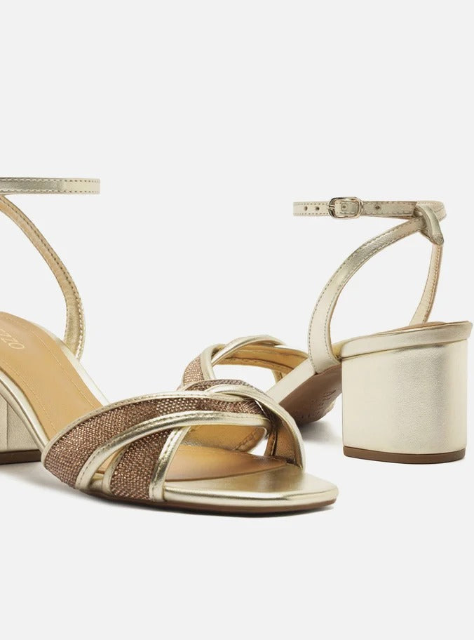SANDÁLIA DOURADA SALTO BLOCO STRASS ENLACE A 11551 0072 0002 AREZZO