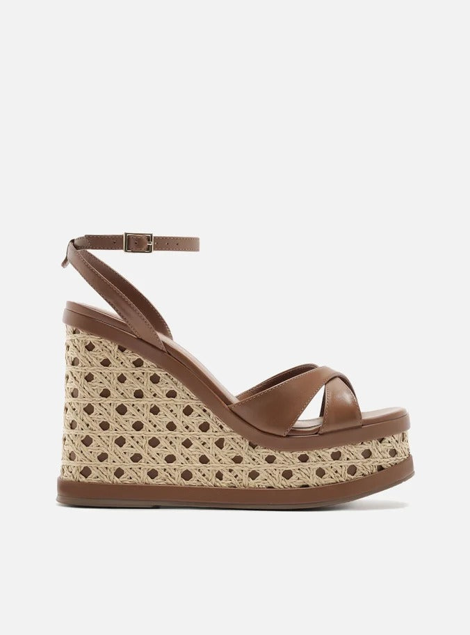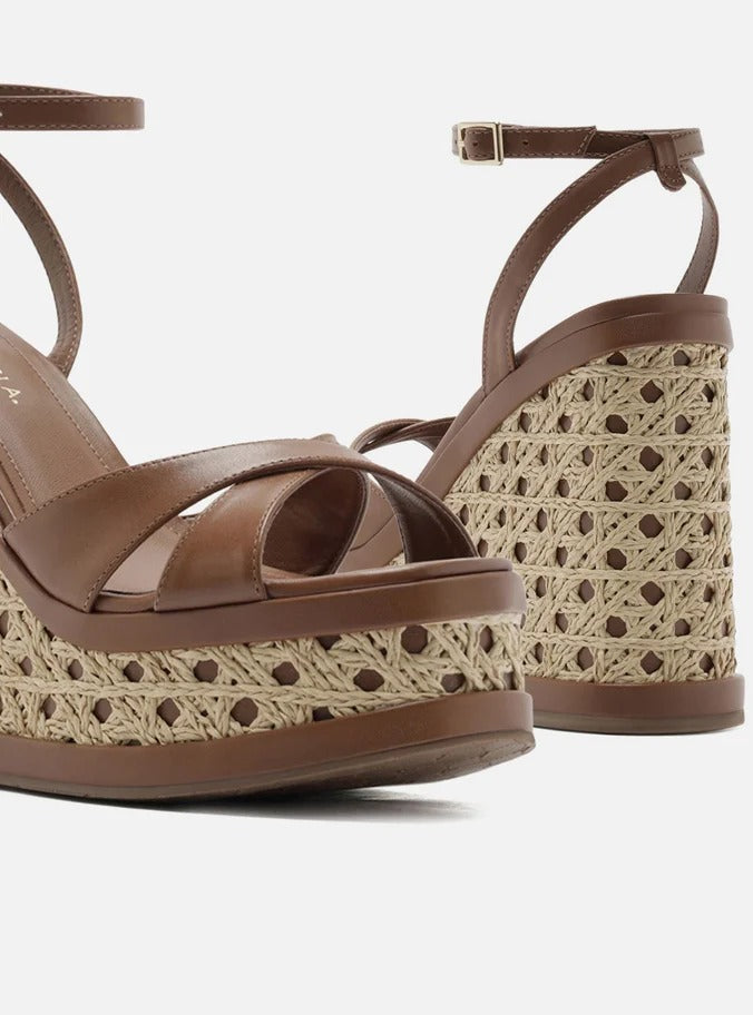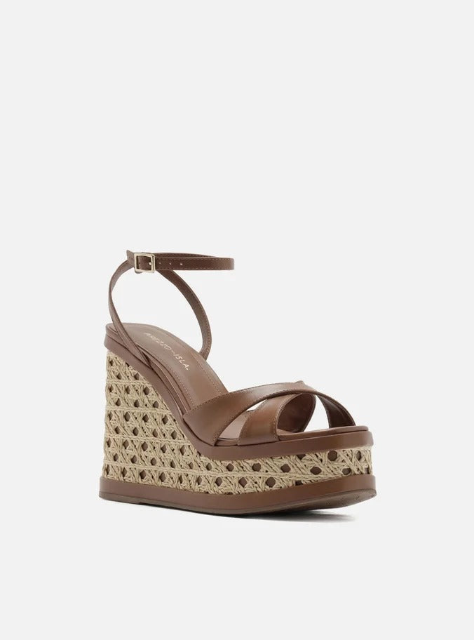 SANDÁLIA MARROM COURO PALHA SEXTAVADA PLATAFORMA A 12523 0046 0001 AREZZO