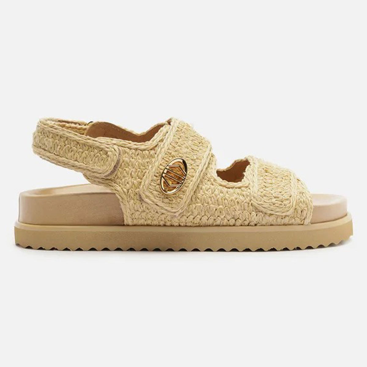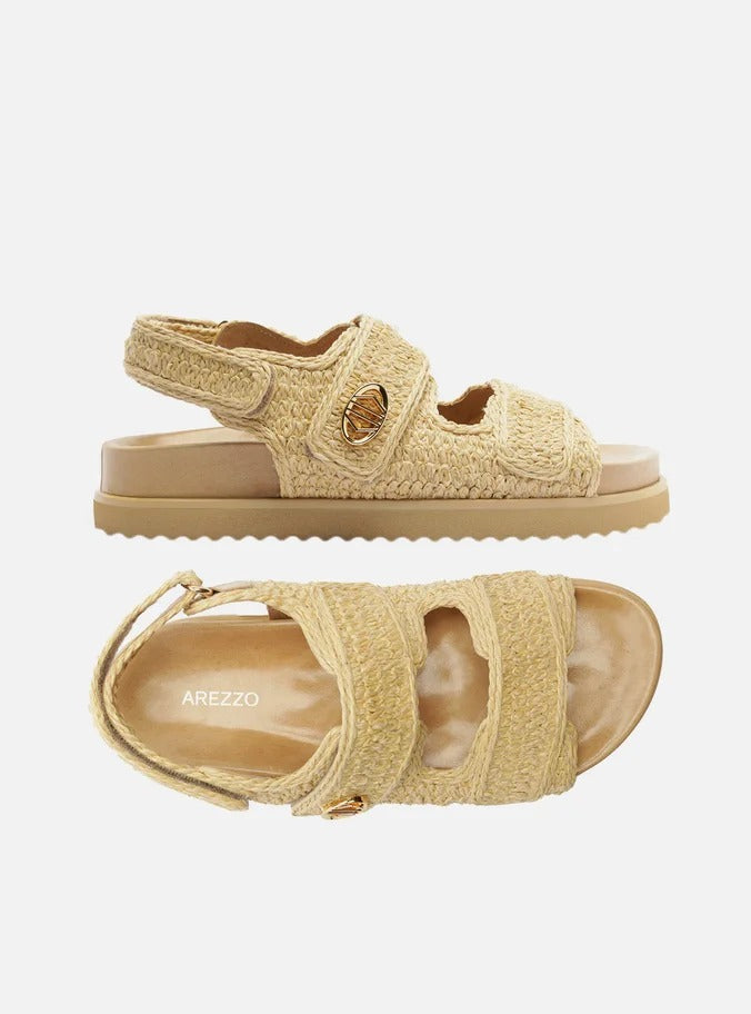 SANDÁLIA PAPETE BEGE BORDADA TRATORADA VELCRO A 13708 0016 0001 AREZZO