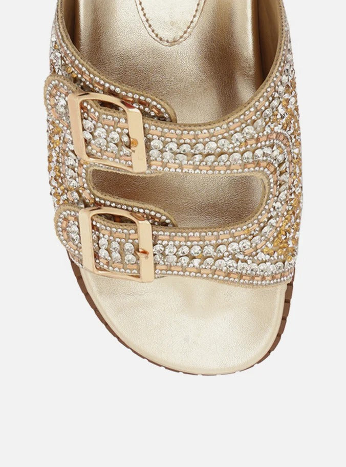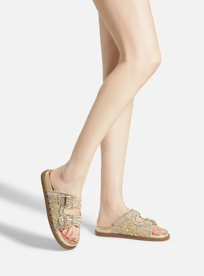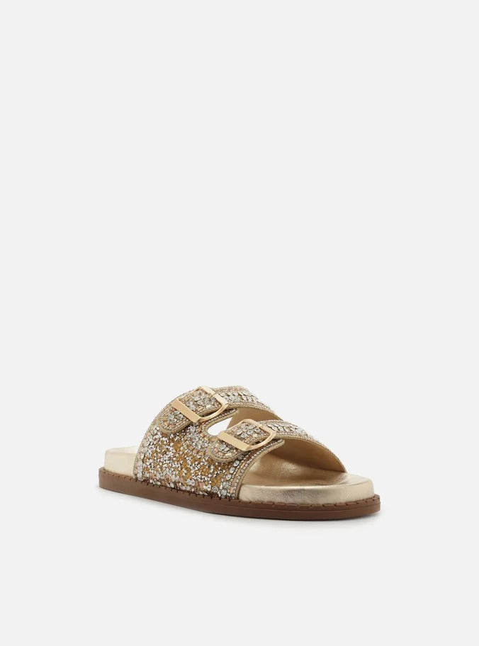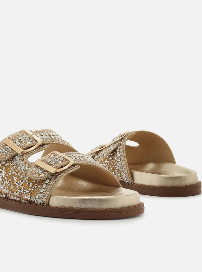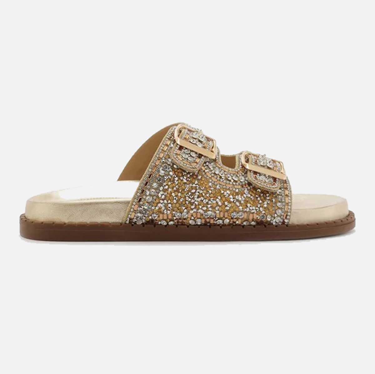 SANDÁLIA PAPETE DOURADA BEADS FIVELAS A 13130 0007 0001 AREZZO