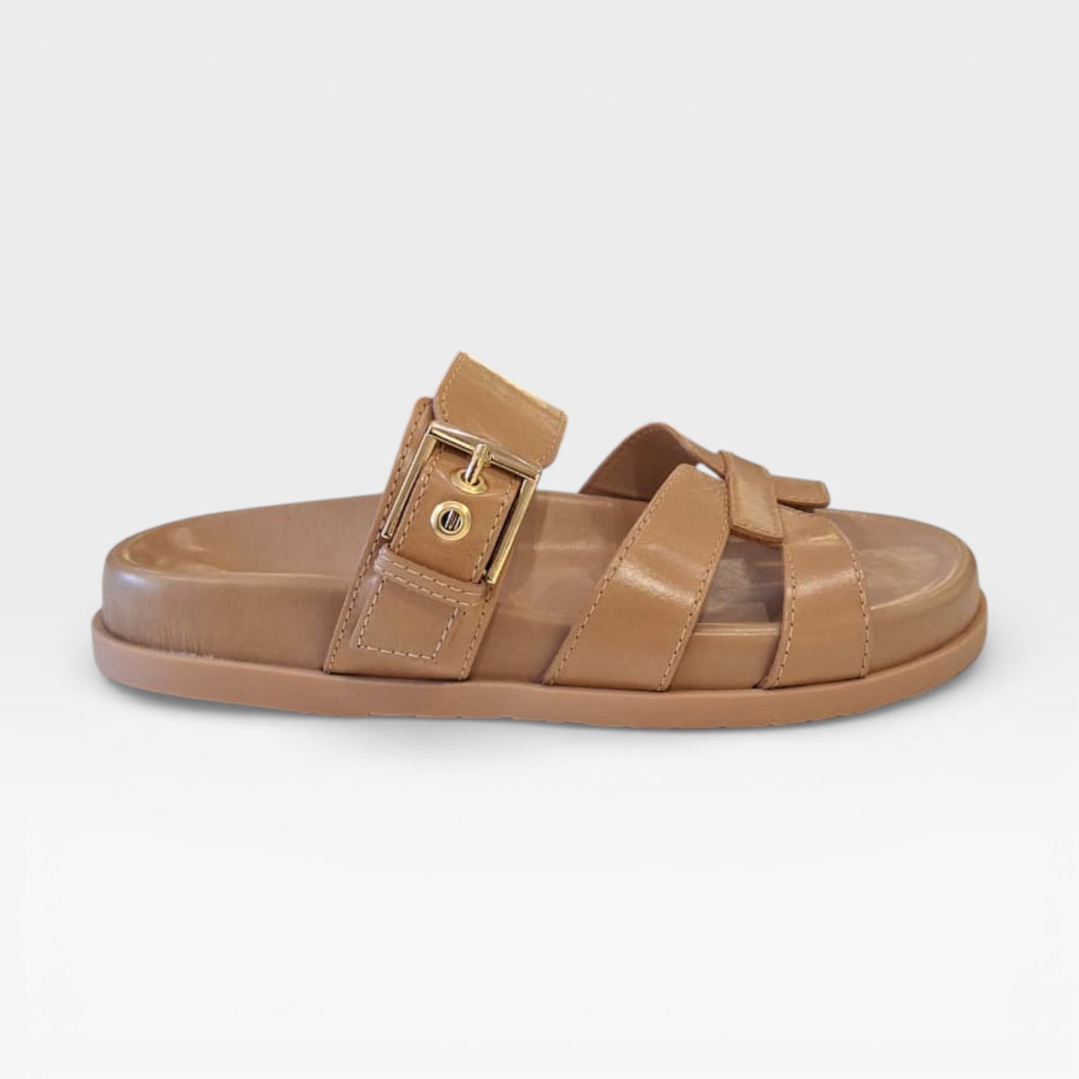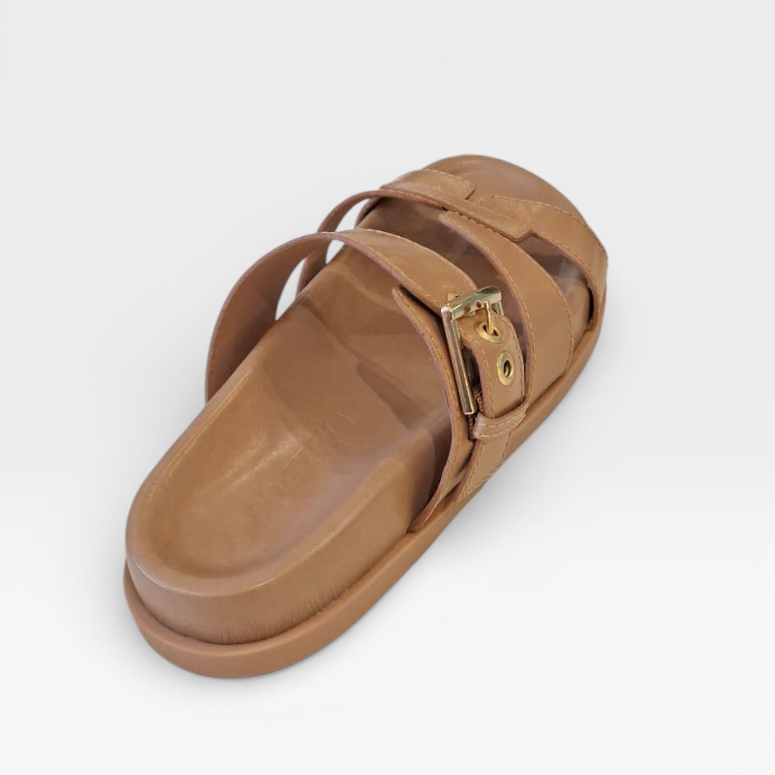 Esta papete slide é o curinga que faltava no seu closet! A cor neutra alonga a silhueta e facilita as combinações, enquanto os metais dourados elevam a produção instantaneamente. Una o conforto da tendência comfy com o design luxuoso da Schutz e esteja pronta para qualquer ocasião com leveza e sofisticação.