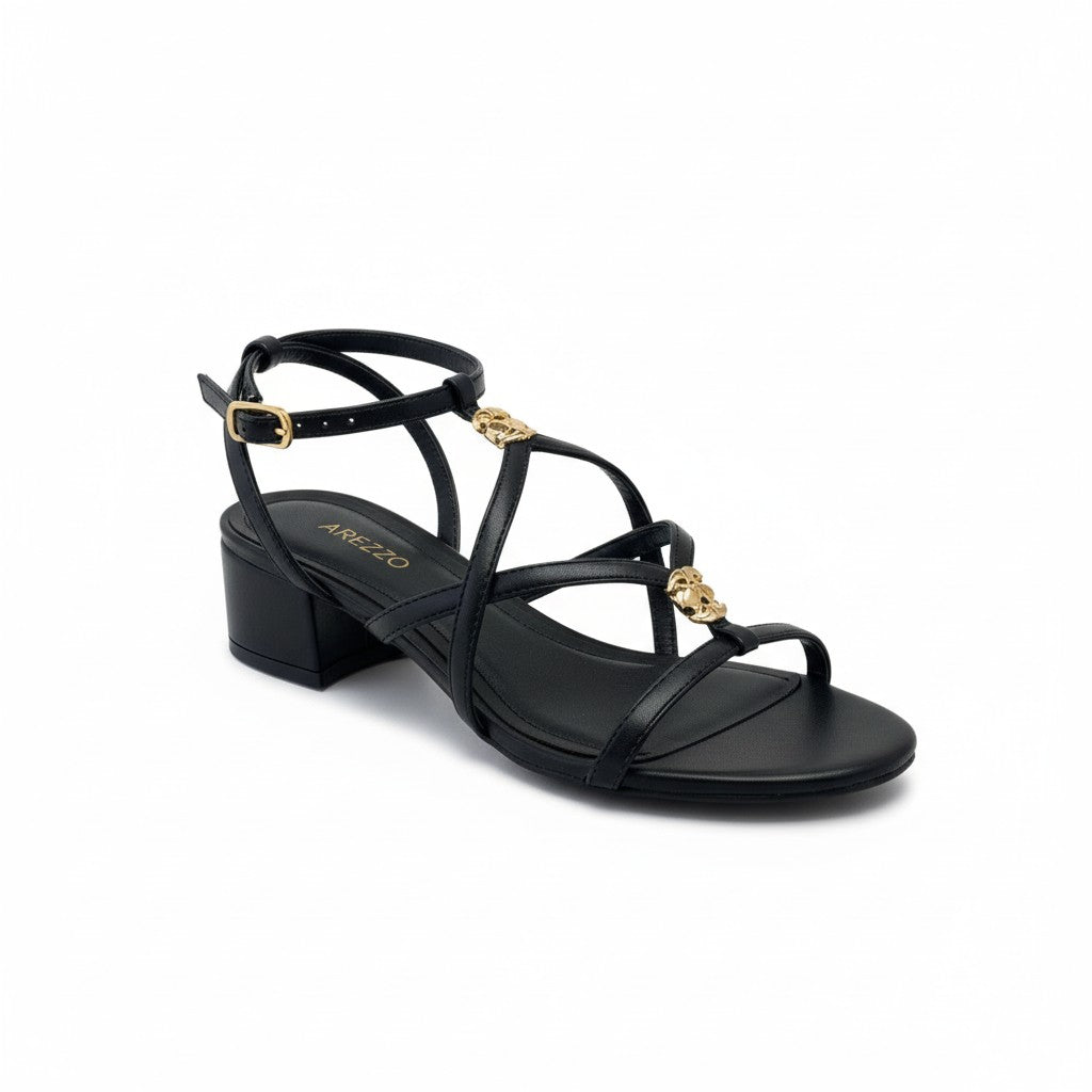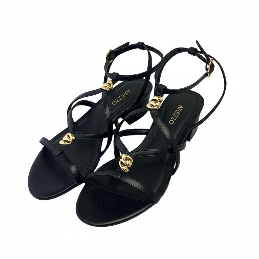 Sandália Preta Arezzo Salto Baixo Tiras – Sofisticação, Conforto e Design Exclusivo
