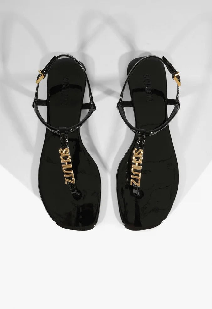 Itens indispensáveis com a chegada do verão, as flats são verdadeiras queridinhas por aliarem estilo e conforto na mesma medida. Perfeita para usar com uma chemise alongada ou até mesmo de pantacourt. Esteja você na praia, cidade ou campo, elas vão te fazer companhia já que são super versáteis. O efeito envernizado e aplicação metálica fazem toda a diferença!