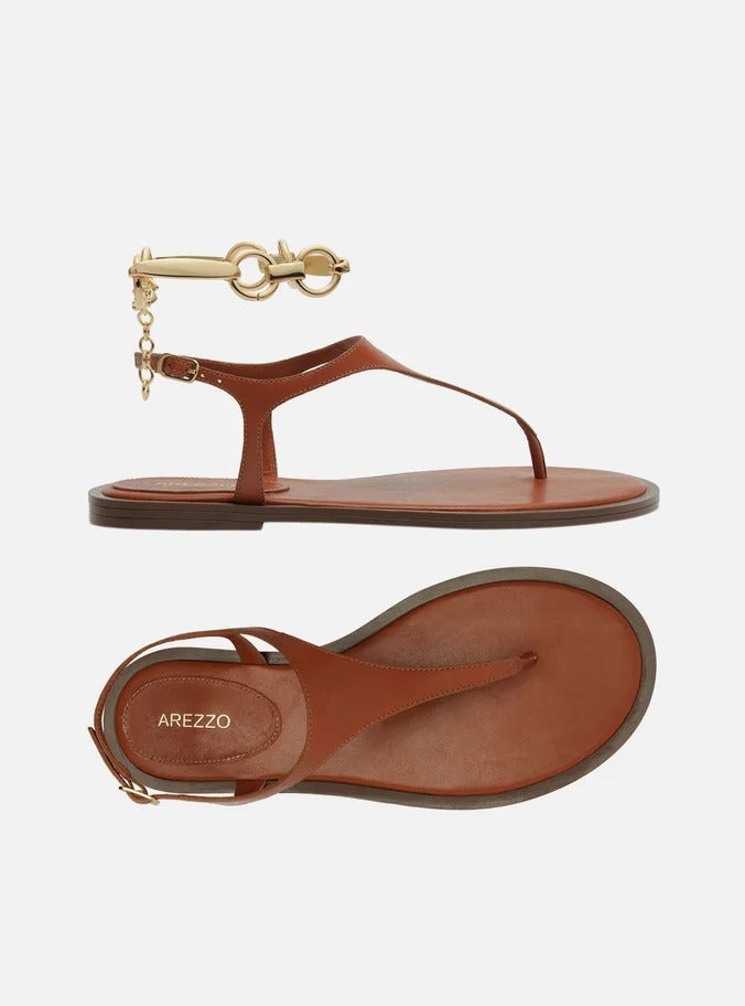 SANDÁLIA RASTEIRA MARROM COURO THONG TORNOZELEIRA A 13988 0001 0002 AREZZO