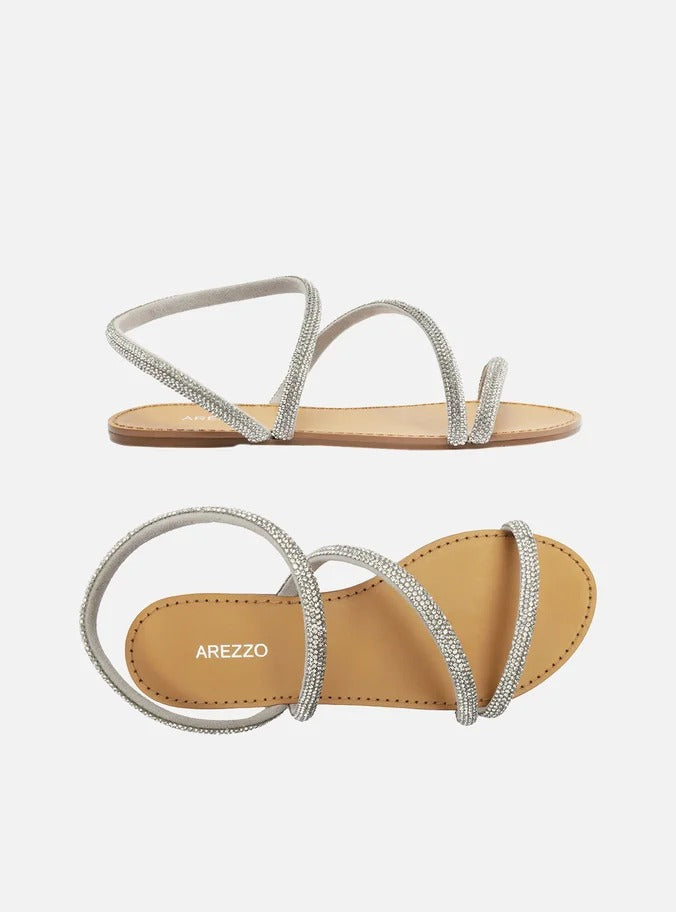 SANDÁLIA RASTEIRA PRATEADA STRASS TIRA CURVA A 10176 1104 0002 AREZZO