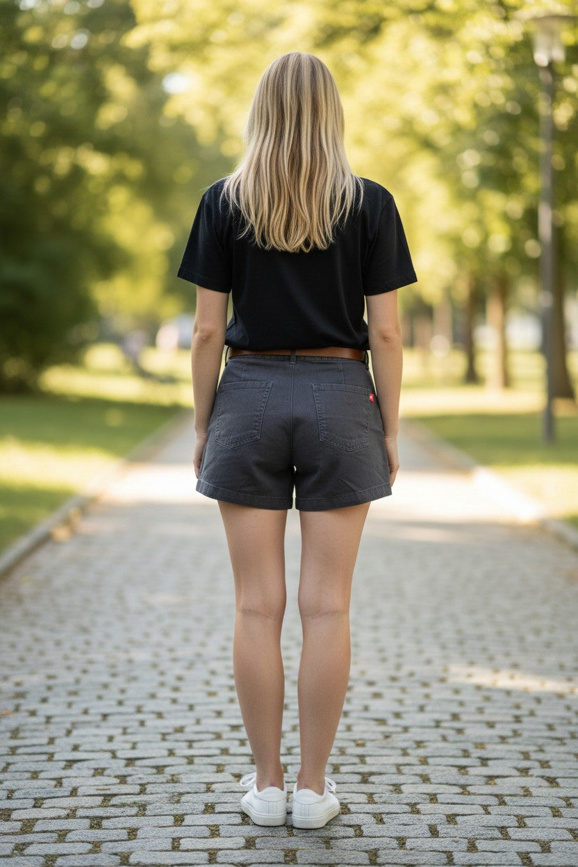 A cintura alta alonga a silhueta e garante um caimento impecável, tornando o shorts perfeito para compor looks casuais, urbanos e até produções mais elaboradas com camisas, bodys ou blusas de alfaiataria.