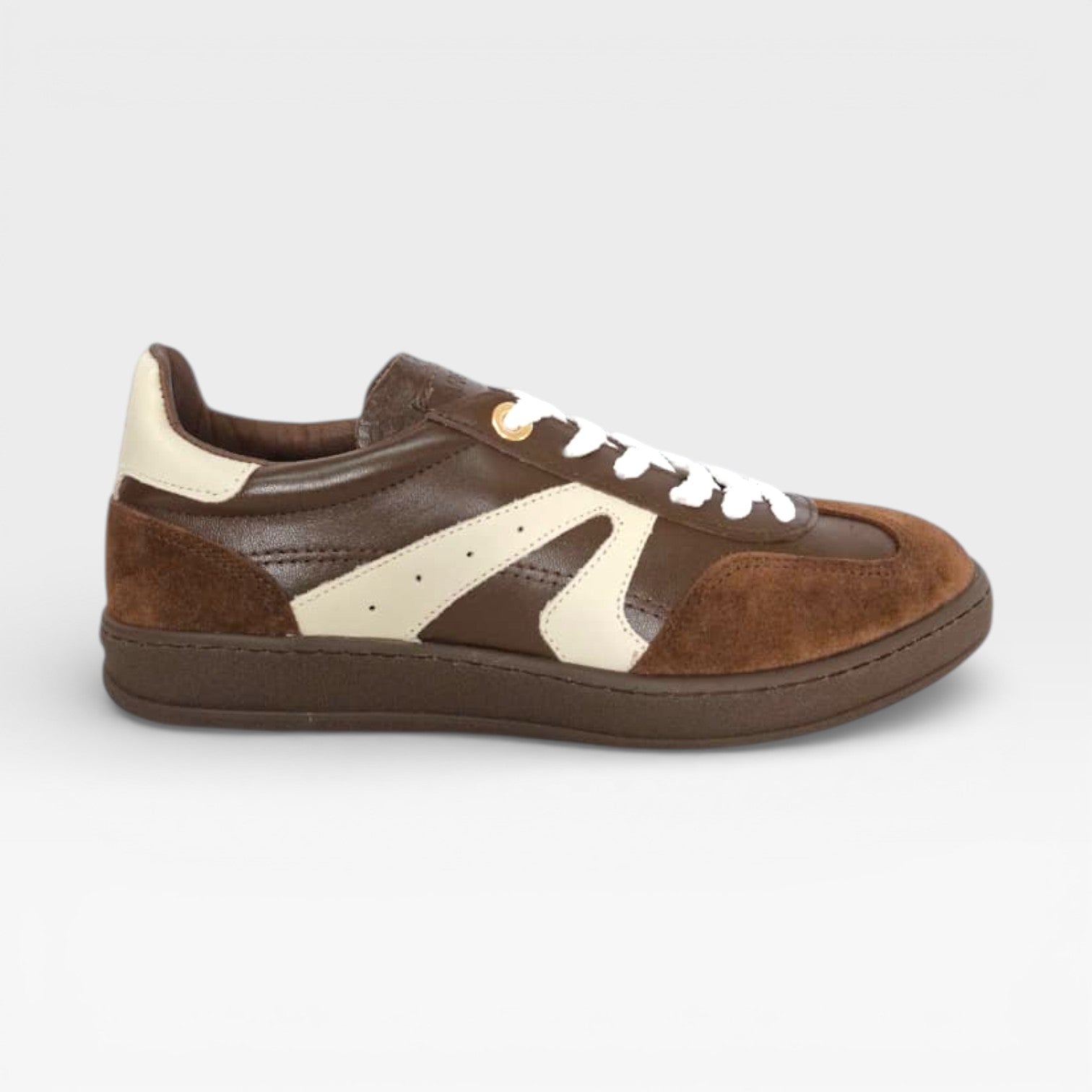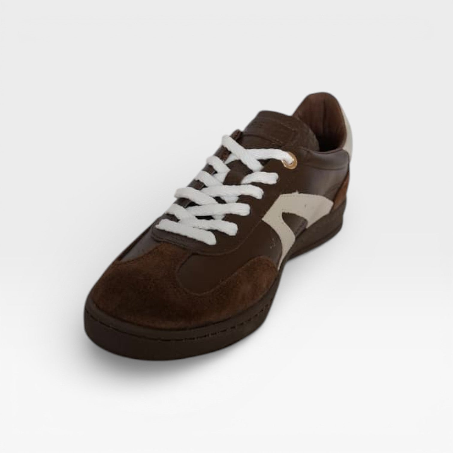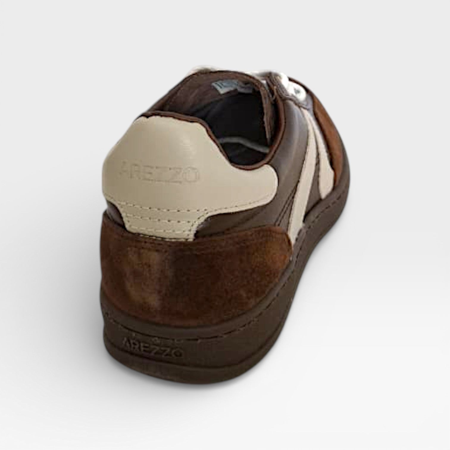 Estilo Retrô – Design inspirado nos tênis esportivos clássicos (estética "gum sole"), com acabamento em couro marrom e camurça de alta qualidade.