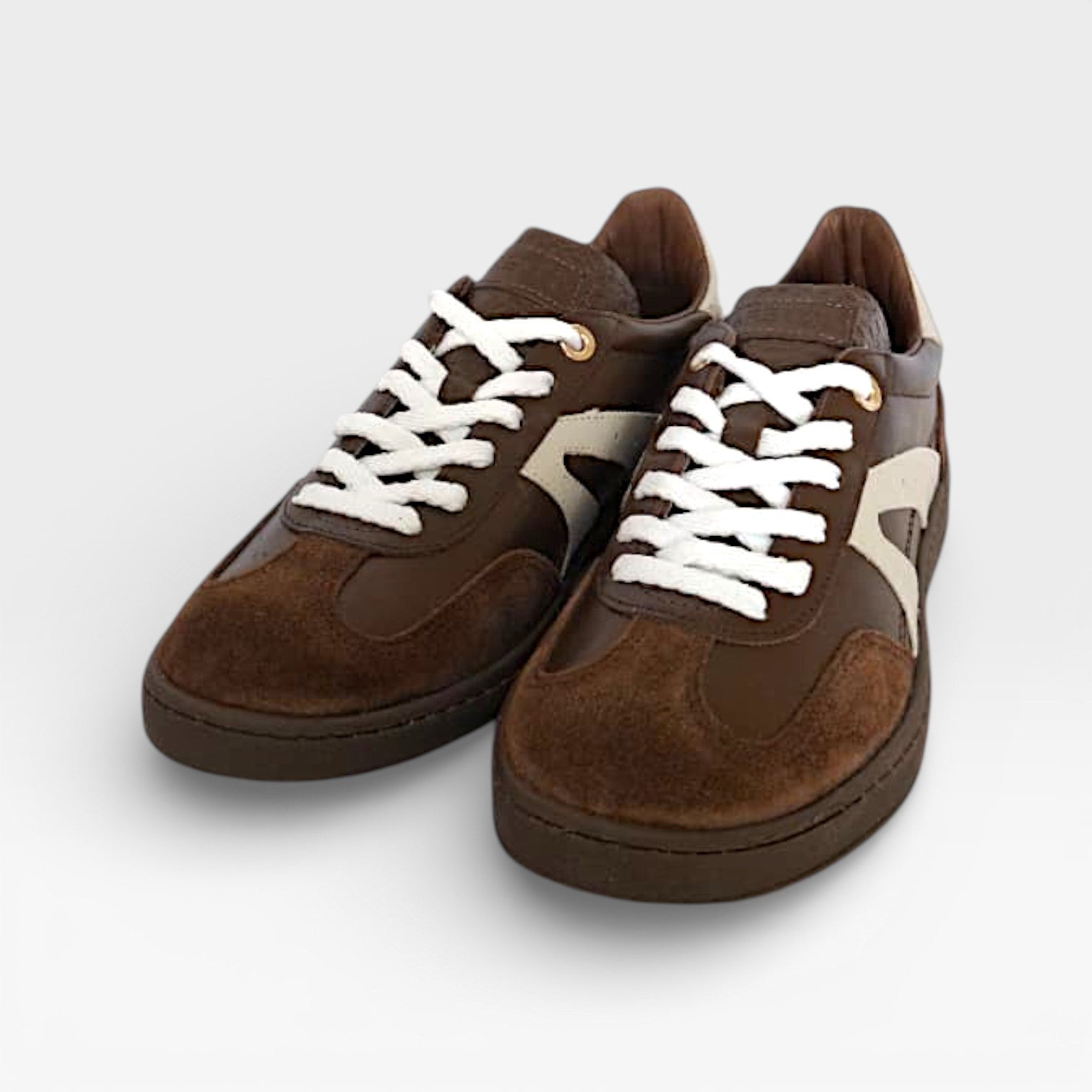 O Tênis SCHUTZ ST-001 Retrô Marrom é a peça que faltava para completar seu estilo urbano com personalidade. Com uma estética vintage irresistível, ele combina couro liso e camurça em tons de marrom café, garantindo um visual rico e texturizado. O contraste com o detalhe lateral claro e o solado escuro traz uma vibe moderna e despojada, ideal para quem busca conforto sem abrir mão da elegância. Perfeito para usar com jeans, alfaiataria ou até vestidos midi, ele é o companheiro ideal para o dia a dia, unindo a tendência do tênis retrô com o DNA fashion da Schutz.