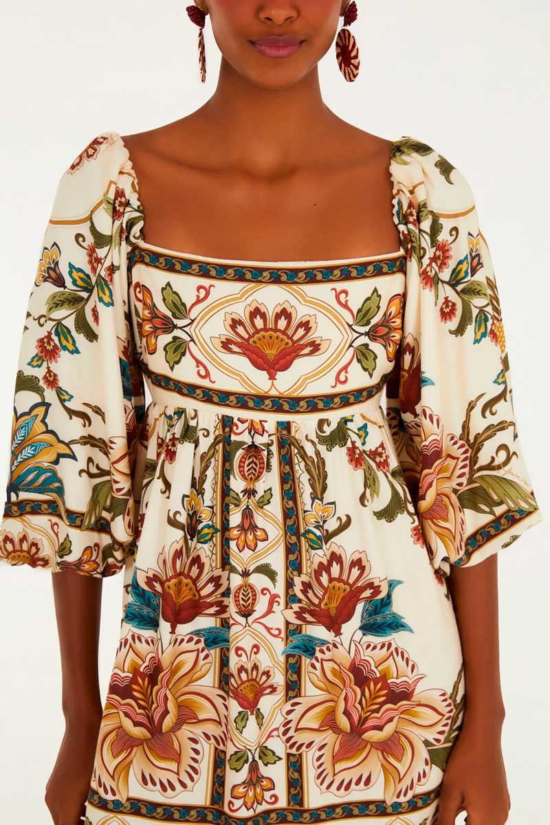 O Vestido Curto Jardim Majestoso FARM Rio é uma celebração à natureza e à alegria das cores tropicais.