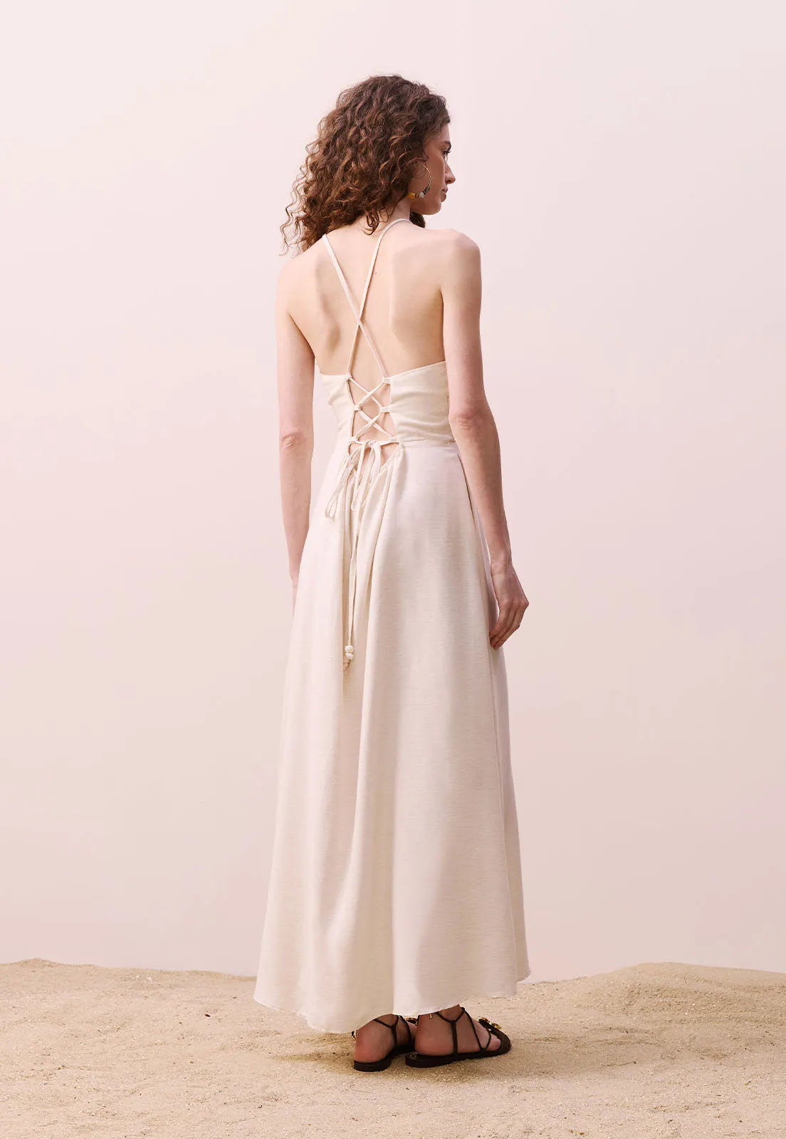 O comprimento midi traz sofisticação na medida certa, enquanto o caimento leve garante fluidez, conforto e movimento natural.